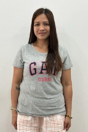DASIC MIALYN BOBADILLA, Ex-Singapore from the Philippines. She has experience in general household work like cleaning,laundry,ironing etc., she is responsible, confident and trustworthy. She has 5 childrens (24, 22, 21, 16 (twins)). She Speaks English. She is good with babies. She is good with children. She is good with elderly.