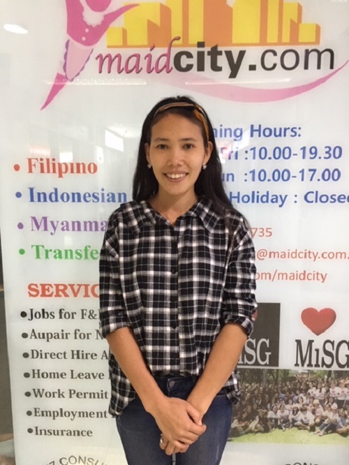 Julie Faith A. Juanitas, Ex-Singapore from the Philippines. She has experience in general household work like cleaning,laundry,ironing etc., she is responsible, confident and trustworthy. She has 0 children She Speaks English, Tagalog. She is good with babies. She is good with children.