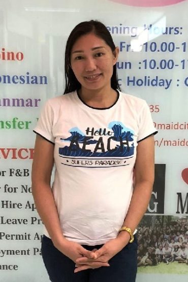 MARCELLANA MARICEL GUIWANON, Ex-Singapore from the Philippines. She has experience in general household work like cleaning,laundry,ironing etc., she is responsible, confident and trustworthy. She has 2 childrens (15,16). She Speaks English. She is good with babies. She is good with children.