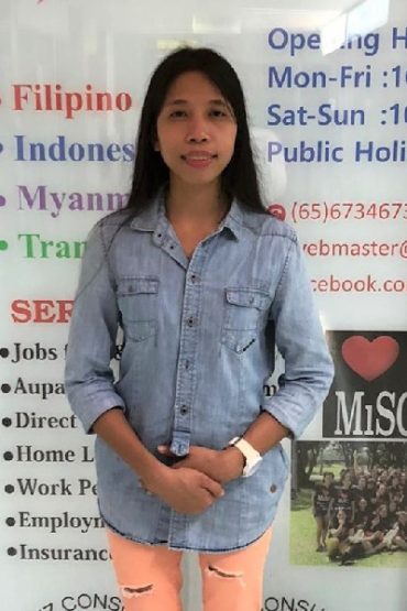 ONATE ANGELICA PAGELA, Ex-Singapore from the Philippines. She has experience in general household work like cleaning,laundry,ironing etc., she is responsible, confident and trustworthy. She Speaks English. She is good with babies. She is good with children.