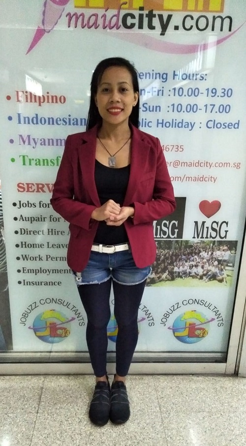 PIODENA MA PINKY LOPERA, Ex-Singapore from the Philippines. She has experience in general household work like cleaning,laundry,ironing etc., she is responsible, confident and trustworthy. She Speaks English. She's can cook chinese dishes. She is good with babies. She is good with children. She is good with elderly.