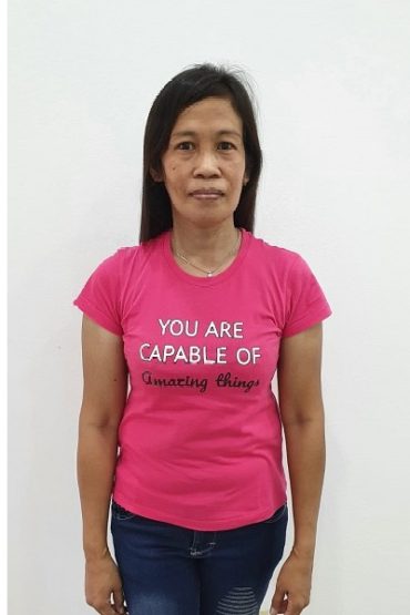 TERESITA PINAROC ARGUEZA, Ex-Singapore from the Philippines. She has experience in general household work like cleaning,laundry,ironing etc., she is responsible, confident and trustworthy. She has 2 childrens (23, 18). She Speaks English. She is good with babies. She is good with children. She is good with elderly.